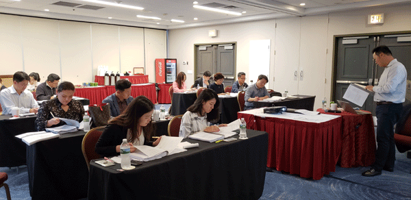 J&B 푸드 컨설팅 제이 이 대표가 뉴저지 포트리 더블트리 호텔에서 열린 ‘해외공급자 검증 프로그램(FSVP) 취득 자격증(Certificate) 과정’ 강연에서 FSVP에 대해 설명하고 있다.