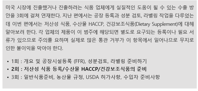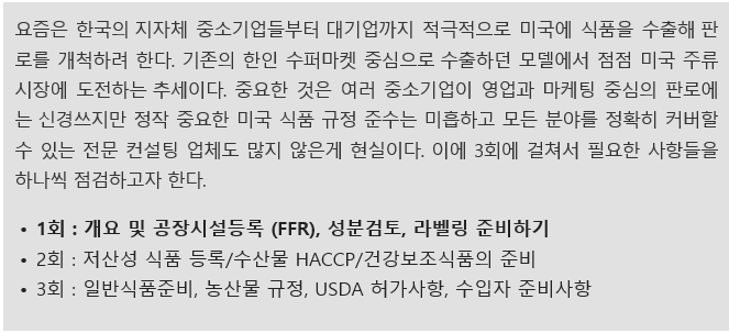 | 미국 식품 수출 가이드(fsvp 취득 및 면제되는 식품) (1) | 2022.10.13 |