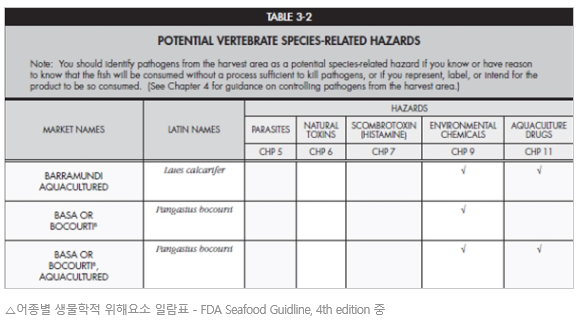 • 각 식품에 대해 알려진 위험 또는 합리적으로 예측 가능한 위험성 결정